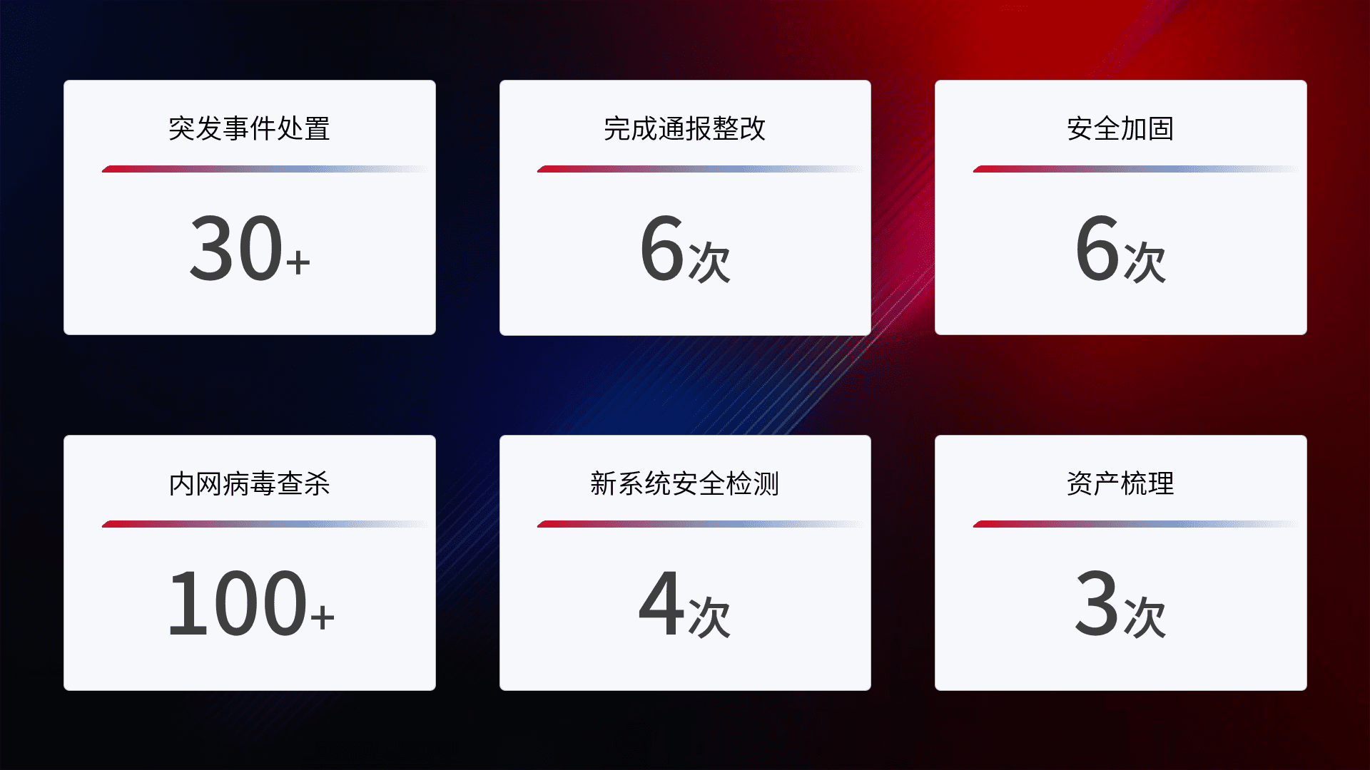 网络安全加固与风险管理:通过技术加固手段,,,如加强区域隔离,,,缩减攻击内网横向移动的范围;优化现有网络安全管理制度,,,降低网络威胁暴露面,,,减少被黑客攻击的可能性。。